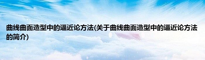 大家好,曲线曲面造型中的逼近论方法,关于曲线曲面造型中的逼近论方法的简介很多人还不知道,现在让我们一起来看看吧!