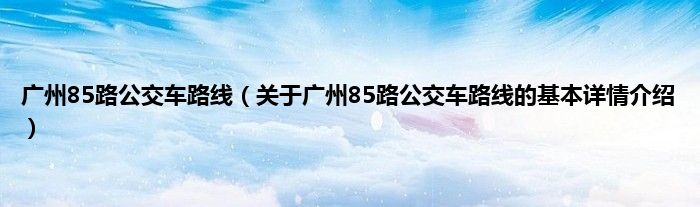 本文关于广州85路公交车路线的基本详情介绍就讲解完毕,希望对大家有所帮助。