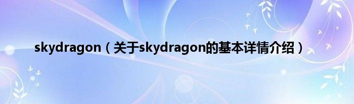 本文关于skydragon的基本详情介绍就讲解完毕,希望对大家有所帮助。