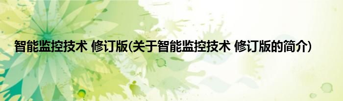 大家好,智能监控技术 修订版,关于智能监控技术 修订版的简介很多人还不知道,现在让我们一起来看看吧!