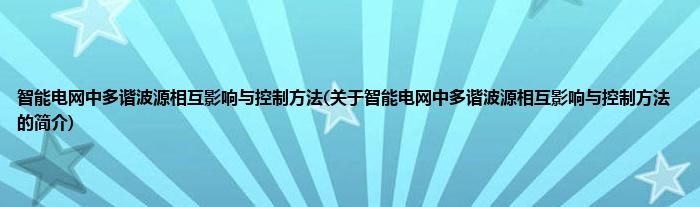 智能电网中多谐波源相互影响与控制方法(关于智能电网中多谐波源相互影响与控制方法的简介)