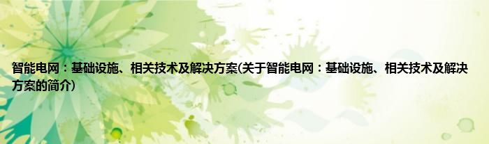 大家好,智能电网:基础设施、相关技术及解决方案,关于智能电网:基础设施、相关技术及解决方案的简介很多人还不知道,现在让我们一起来看看吧!