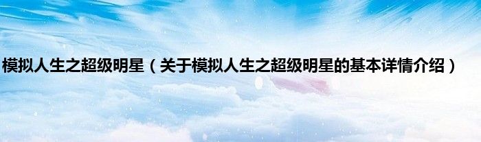 本文关于模拟人生之超级明星的基本详情介绍就讲解完毕,希望对大家有所帮助。
