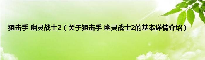 本文关于狙击手 幽灵战士2的基本详情介绍就讲解完毕,希望对大家有所帮助。