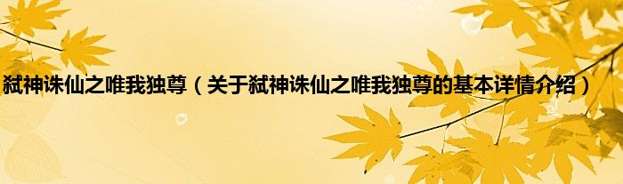 本文关于弑神诛仙之唯我独尊的基本详情介绍就讲解完毕,希望对大家有所帮助。