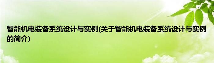 大家好,智能机电装备系统设计与实例,关于智能机电装备系统设计与实例的简介很多人还不知道,现在让我们一起来看看吧!