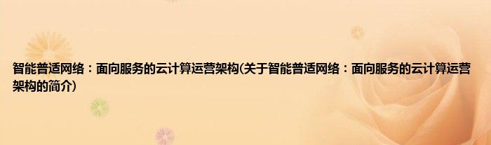 本文关于智能普适网络:面向服务的云计算运营架构的简介就讲解完毕,希望对大家有所帮助。