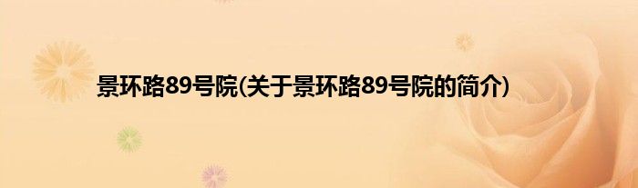 本文关于景环路89号院的简介就讲解完毕,希望对大家有所帮助。