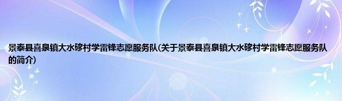 大家好,景泰县喜泉镇大水䃎村学雷锋志愿服务队,关于景泰县喜泉镇大水䃎村学雷锋志愿服务队的简介很多人还不知道,现在让我们一起来看看吧!
