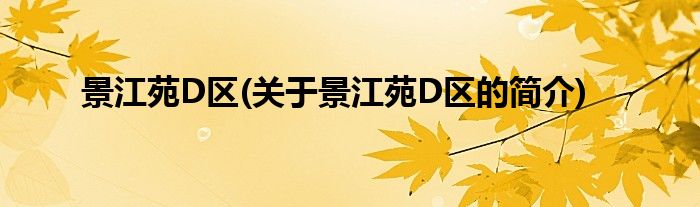 景江苑D区(关于景江苑D区的简介)