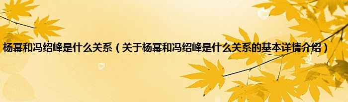 本文关于杨幂和冯绍峰是什么关系的基本详情介绍就讲解完毕,希望对大家有所帮助。