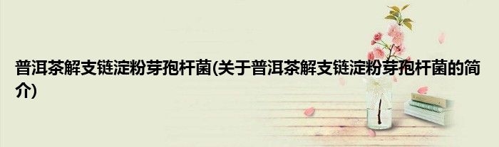 本文关于普洱茶解支链淀粉芽孢杆菌的简介就讲解完毕,希望对大家有所帮助。