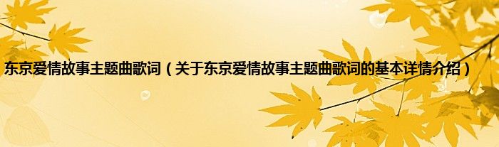 本文关于东京爱情故事主题曲歌词的基本详情介绍就讲解完毕,希望对大家有所帮助。