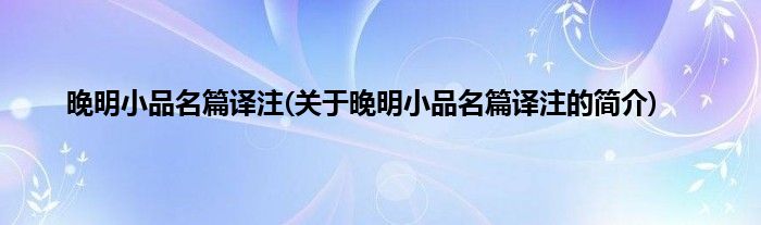 本文关于晚明小品名篇译注的简介就讲解完毕,希望对大家有所帮助。