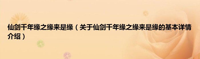 本文关于仙剑千年缘之缘来是缘的基本详情介绍就讲解完毕,希望对大家有所帮助。