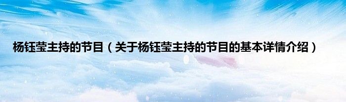 本文关于杨钰莹主持的节目的基本详情介绍就讲解完毕,希望对大家有所帮助。