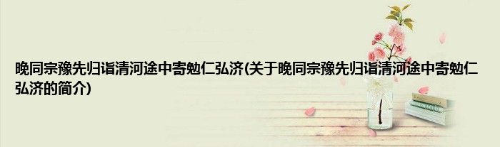 本文关于晚同宗豫先归诣清河途中寄勉仁弘济的简介就讲解完毕,希望对大家有所帮助。