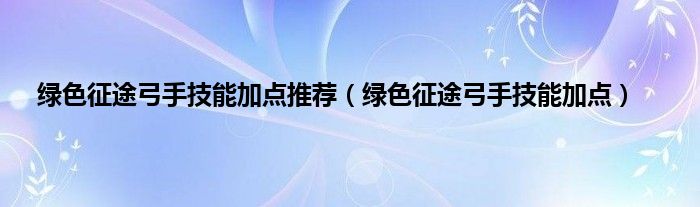 以上就是【绿色征途弓手技能加点推荐,绿色征途弓手技能加点】相关内容。