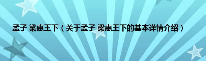 本文关于孟子 梁惠王下的基本详情介绍就讲解完毕,希望对大家有所帮助。