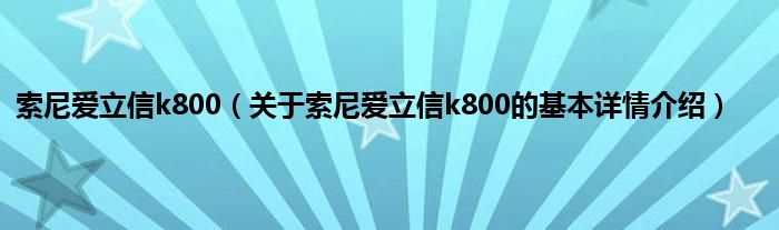 本文关于索尼爱立信k800的基本详情介绍就讲解完毕,希望对大家有所帮助。