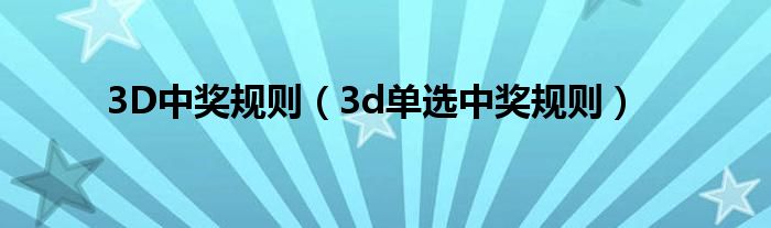 以上就是【3D中奖规则,3d单选中奖规则】相关内容。