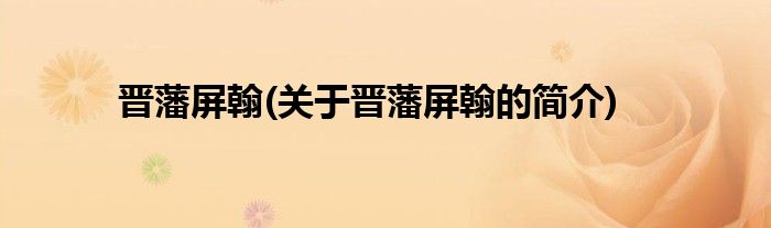 大家好,晋藩屏翰,关于晋藩屏翰的简介很多人还不知道,现在让我们一起来看看吧!