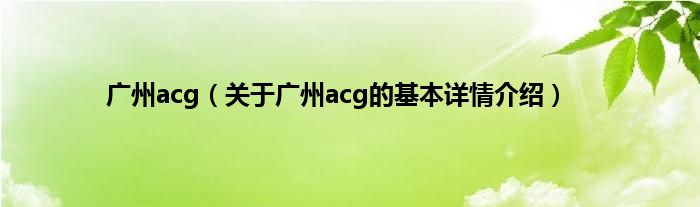 本文关于广州acg的基本详情介绍就讲解完毕,希望对大家有所帮助。