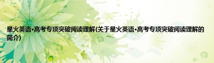 本文关于星火英语·高考专项突破阅读理解的简介就讲解完毕,希望对大家有所帮助。