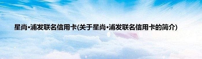本文关于星尚·浦发联名信用卡的简介就讲解完毕,希望对大家有所帮助。
