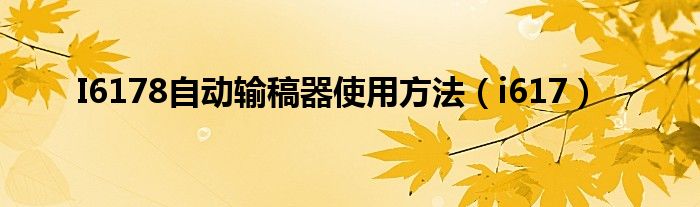 以上就是【I6178自动输稿器使用方法,i617】相关内容。