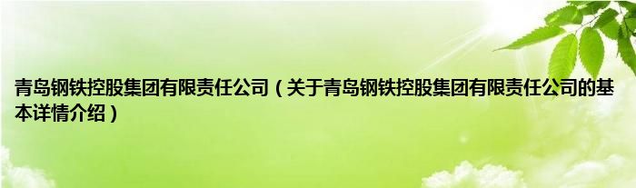 本文关于青岛钢铁控股集团有限责任公司的基本详情介绍就讲解完毕,希望对大家有所帮助。