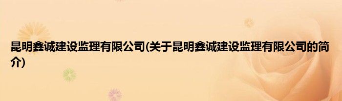 本文关于昆明鑫诚建设监理有限公司的简介就讲解完毕,希望对大家有所帮助。