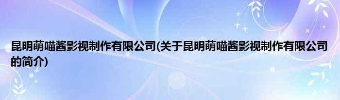 昆明萌喵酱影视制作有限公司(关于昆明萌喵酱影视制作有限公司的简介)