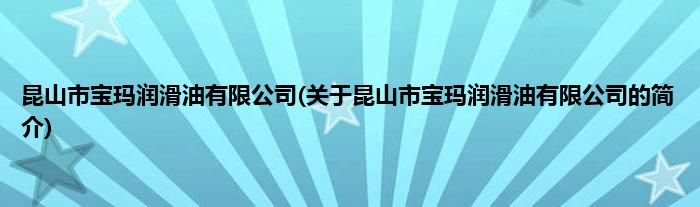 本文关于昆山市宝玛润滑油有限公司的简介就讲解完毕,希望对大家有所帮助。