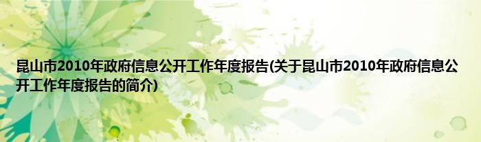 1、 《昆山市2010年政府信息公开工作年度报告》是昆山市发布的报告。