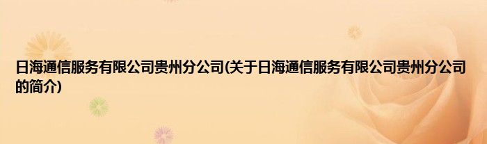 本文关于日海通信服务有限公司贵州分公司的简介就讲解完毕,希望对大家有所帮助。