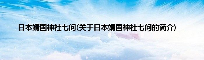 本文关于日本靖国神社七问的简介就讲解完毕,希望对大家有所帮助。