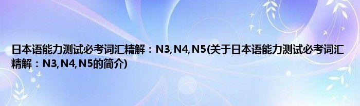 大家好,日本语能力测试必考词汇精解:N3,N4,N5,关于日本语能力测试必考词汇精解:N3,N4,N5的简介很多人还不知道,现在让我们一起来看看吧!