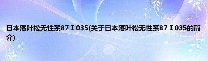 日本落叶松无性系87Ⅰ035(关于日本落叶松无性系87Ⅰ035的简介)