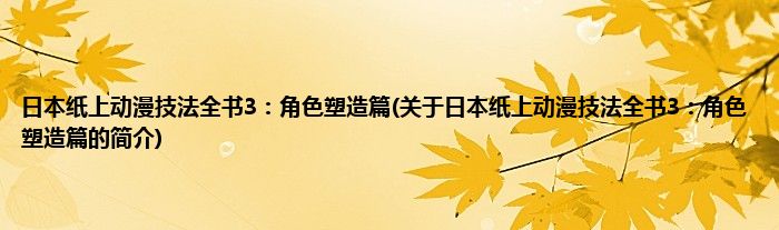 本文关于日本纸上动漫技法全书3:角色塑造篇的简介就讲解完毕,希望对大家有所帮助。