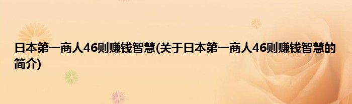 本文关于日本第一商人46则赚钱智慧的简介就讲解完毕,希望对大家有所帮助。