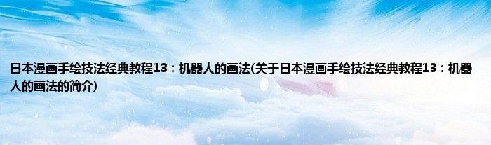 1、 《日本漫画手绘技法经典教程13:机器人的画法》是中国民族摄影出版社出版的图书。
