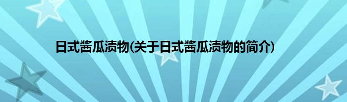 本文关于日式酱瓜渍物的简介就讲解完毕,希望对大家有所帮助。