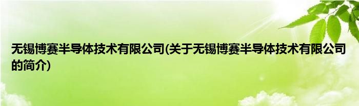 本文关于无锡博赛半导体技术有限公司的简介就讲解完毕,希望对大家有所帮助。