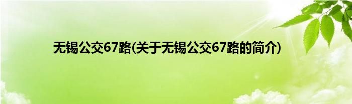 本文关于无锡公交67路的简介就讲解完毕,希望对大家有所帮助。