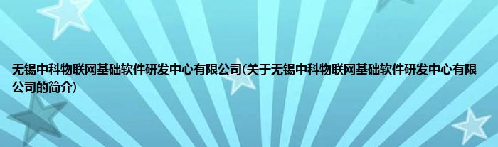 本文关于无锡中科物联网基础软件研发中心有限公司的简介就讲解完毕,希望对大家有所帮助。