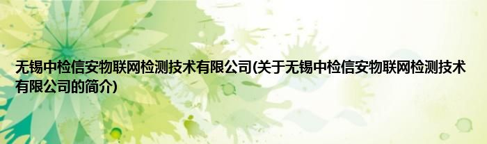 本文关于无锡中检信安物联网检测技术有限公司的简介就讲解完毕,希望对大家有所帮助。