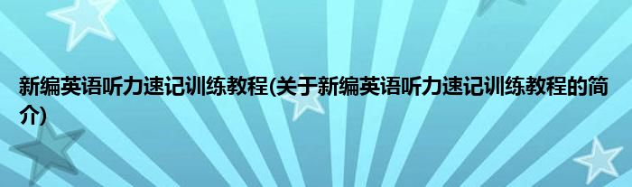 本文关于新编英语听力速记训练教程的简介就讲解完毕,希望对大家有所帮助。