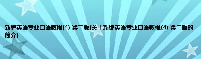 1、 《新编英语专业口语教程(4)(第二版)》是2012年出版的图书。