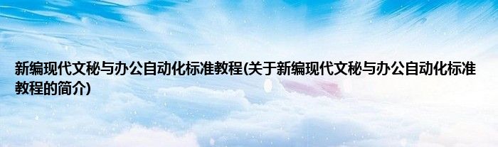 最佳答案大家好,新编现代文秘与办公自动化标准教程,关于新编现代文秘与办公自动化标准教程的简介很多人还不知道,现在让我们一起来看看吧! 1、 《新编现代文秘与办公自动化标准教程》是成都时代出版社(原蜀蓉棋艺出版社)出版的图书。2、作者是谢俊刚。本文关于新编现代文秘与办公自动化标准教程的简介...